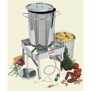 Bayou Classic Stainless Steel Cookware is the premium choice for those who demand the highest quality products for their outdoor cooking needs. This is the traditional Bayou Classic Outdoor Cooking Kit, but with the refinement of polished stainless steel. Fry a whole turkey in as little as 45 minutes, or using the included Skewer Set, fry 3 chickens in 20 minutes. The perforated basket is raised 1.75 in. above the bottom for steaming or boiling seafood, crawfish, clams, corn, and other vegetables. Read More